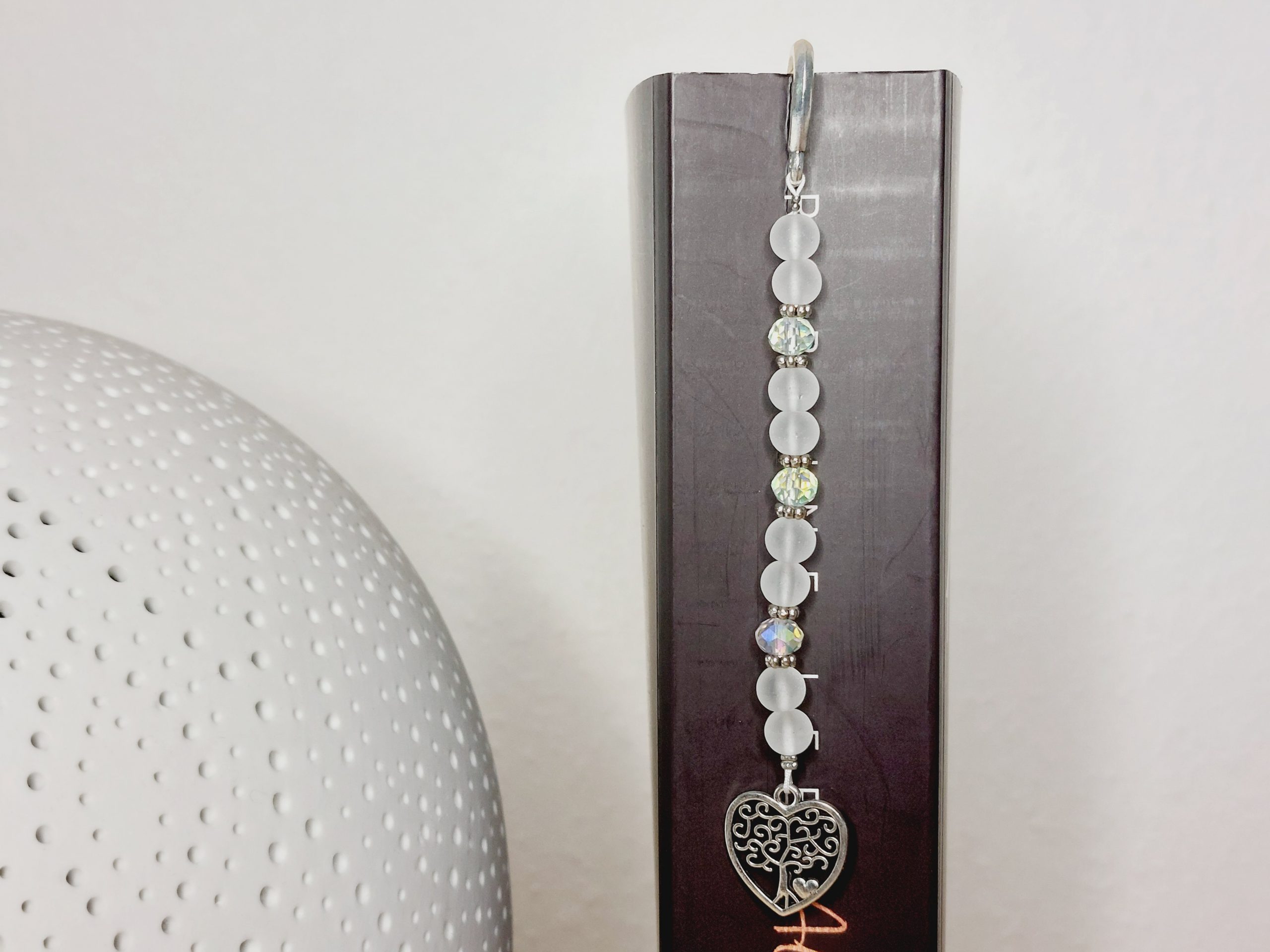 Schönes Lesezeichen mit Glas Perlen und Baum Herz Anhänger.